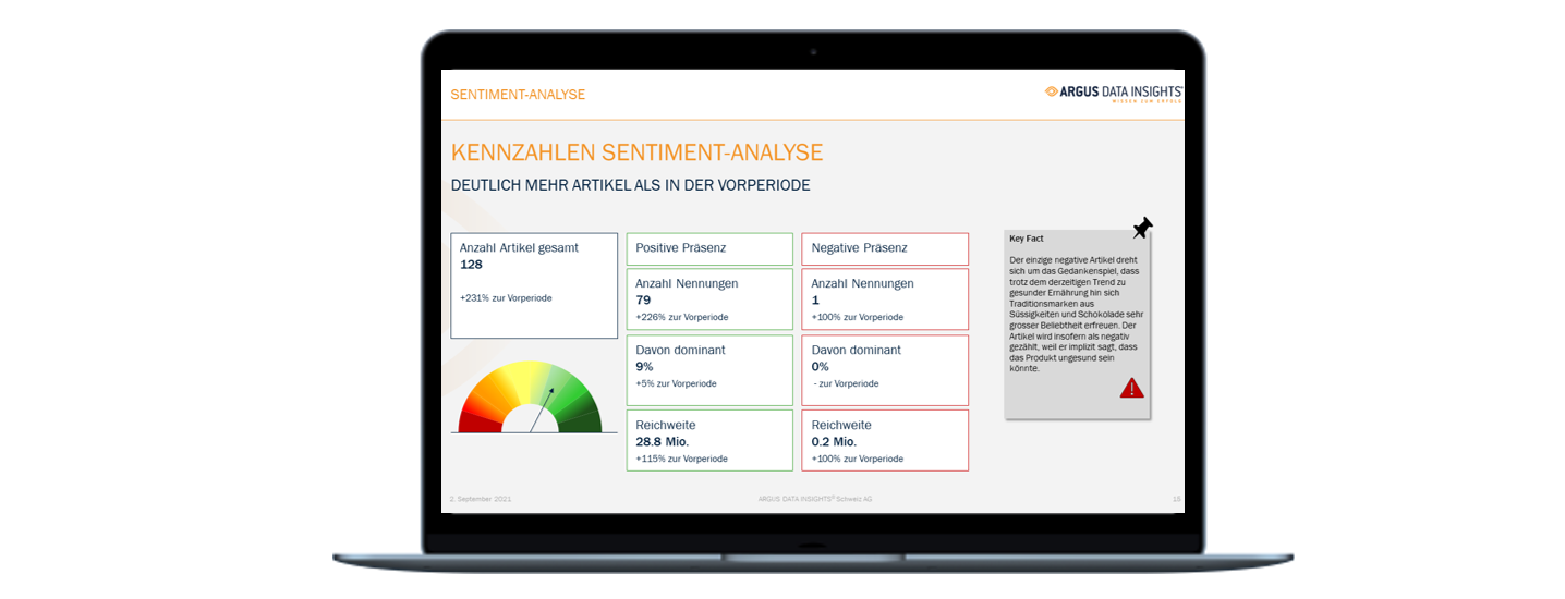 Die Sentiment-Analyse liefert Informationen über die Wahrnehmung Ihres Unternehmens und gibt Einblicke in die Tonalität der Berichterstattung.